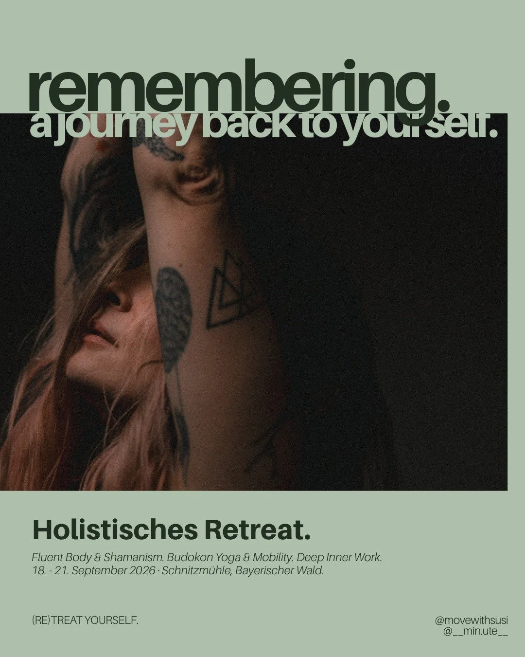 Retreatyourself.space ist mein persönlicher Ort für das, was mich selbst über Jahre gehalten, verändert und zurück auf den Boden gebracht hat: Bewegung, Stille, ehrliche Körperarbeit, Nervensystem, Verbindung.